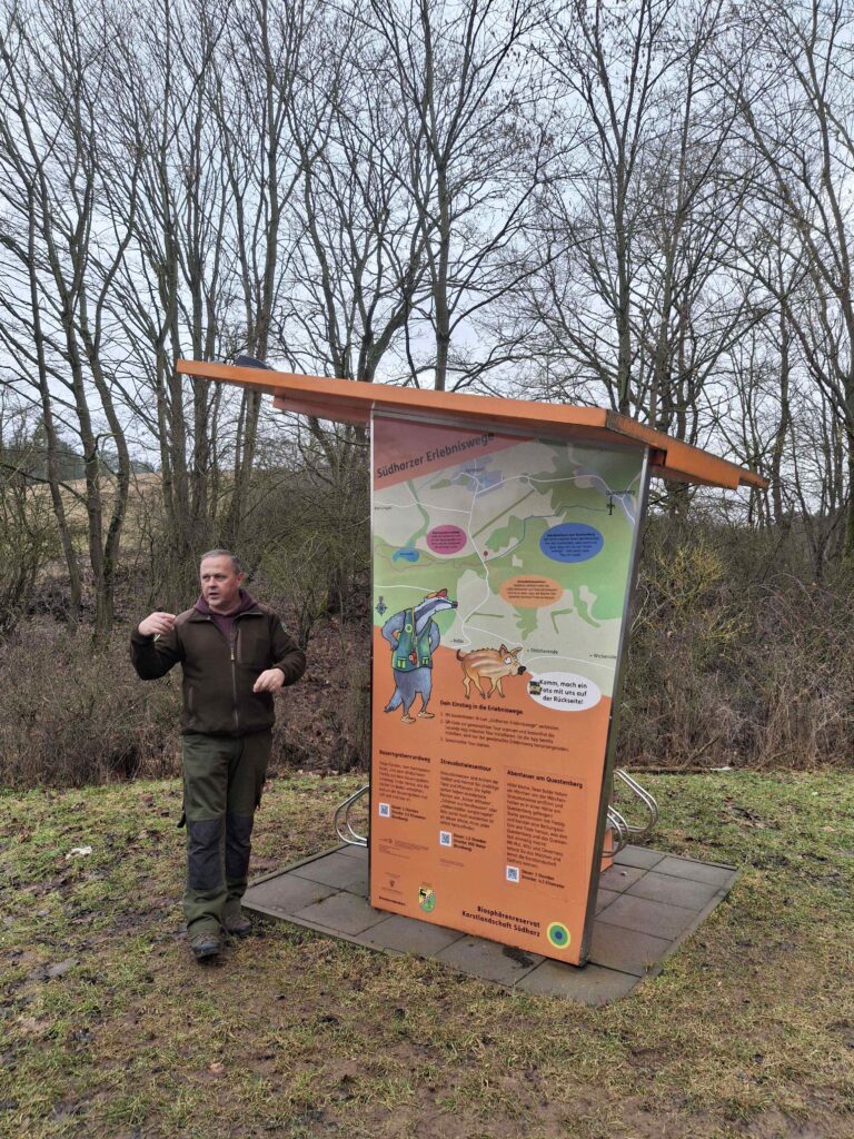 Mit unserem touristischen Partner des Biosphärenreservat Karstlandschaft Südharz, der Gemeinde Südharz und der Standortentwicklungsgesellschaft Mansfeld-Südharz waren unsere Ranger Andreas Otto und Raik Fleckstein auf Entdeckungstour am Bauerngraben unterwegs. Der Bauerngraben ist eines der eindrucksvollsten Naturwunder im Südharzer Karst: Mal trocken, mal ein See – je nach Wasserstand. Doch warum verschwindet das Wasser manchmal einfach? Die Lösung: Unterirdische Hohlräume und Spalten im Karstgestein lassen das Wasser versickern. Ist der Untergrund gesättigt oder sind die Abflusswege gefüllt, sammelt sich das Wasser wieder in der Senke – ein faszinierendes Naturschauspiel!